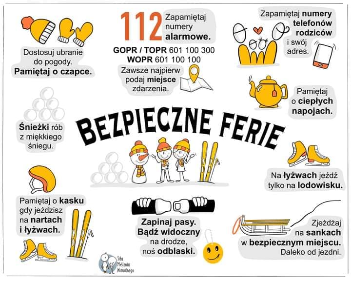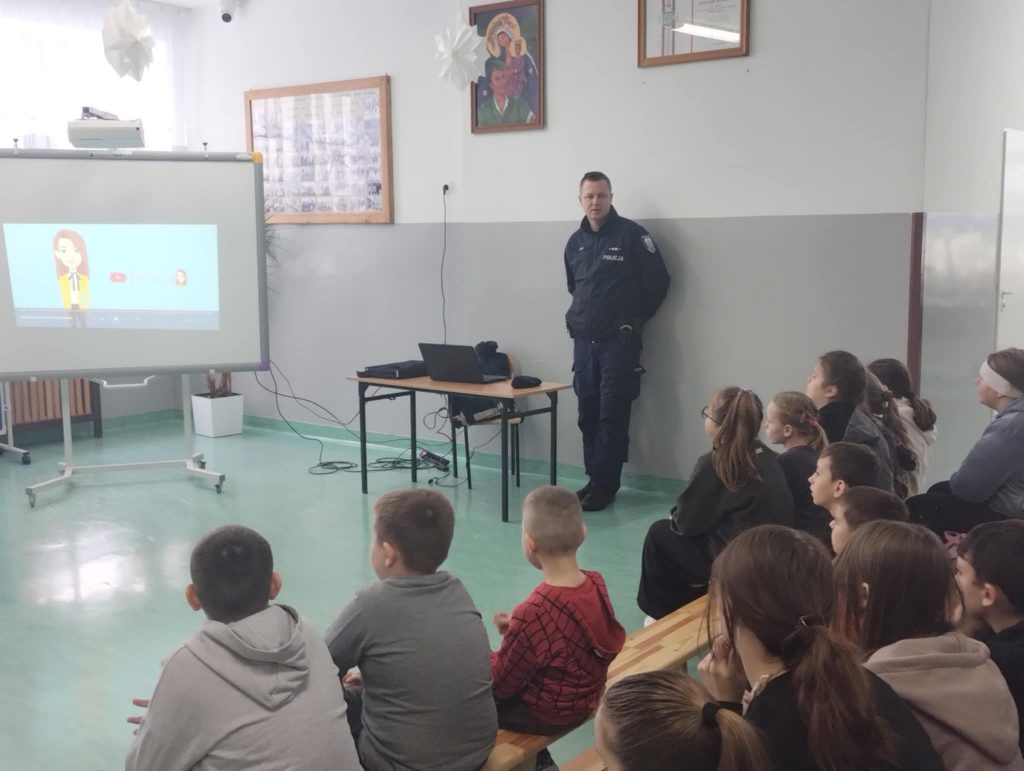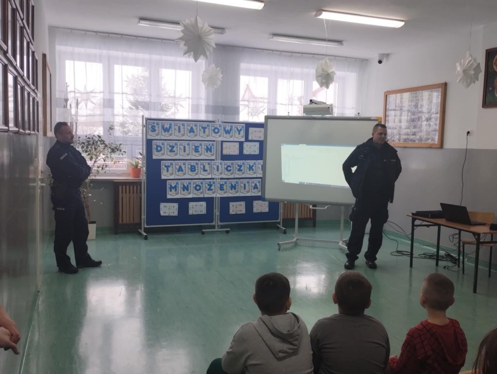 W dniu 14.01.2026 w naszej szkole odbyła się prelekcja przeprowadzona przez policjantów, której celem było przypomnienie zasad bezpieczeństwa podczas ferii zimowych. Omówiono zagrożenia związane z zabawami na śniegu i lodzie, poruszaniem się po drogach, korzystaniem z Internetu oraz kontaktami z osobami nieznajomymi. Zwrócono również uwagę na konieczność przestrzegania zasad bezpieczeństwa w czasie wypoczynku w domu i poza nim.
