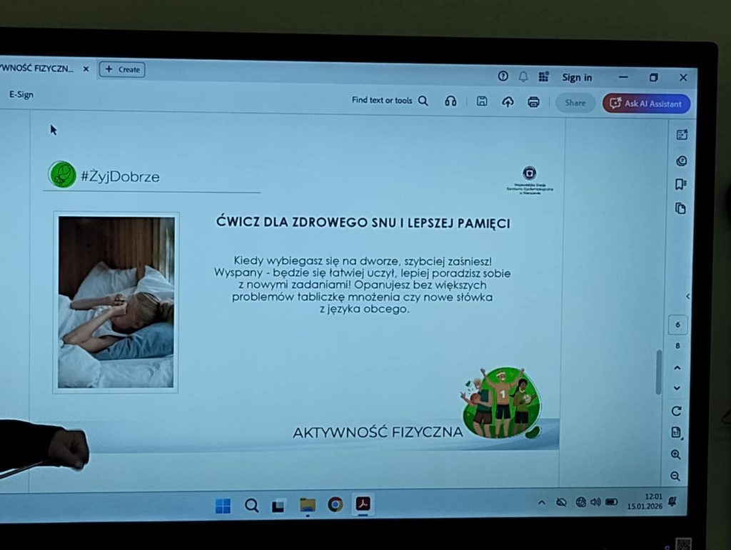 Dodatkowo, w ramach programu profilaktycznego „Żyj dobrze” poruszono zagadnienia dotyczące zdrowego odżywiania, aktywności fizycznej, higieny osobistej, radzenia sobie ze stresem oraz znaczenia odpowiedniego wypoczynku.