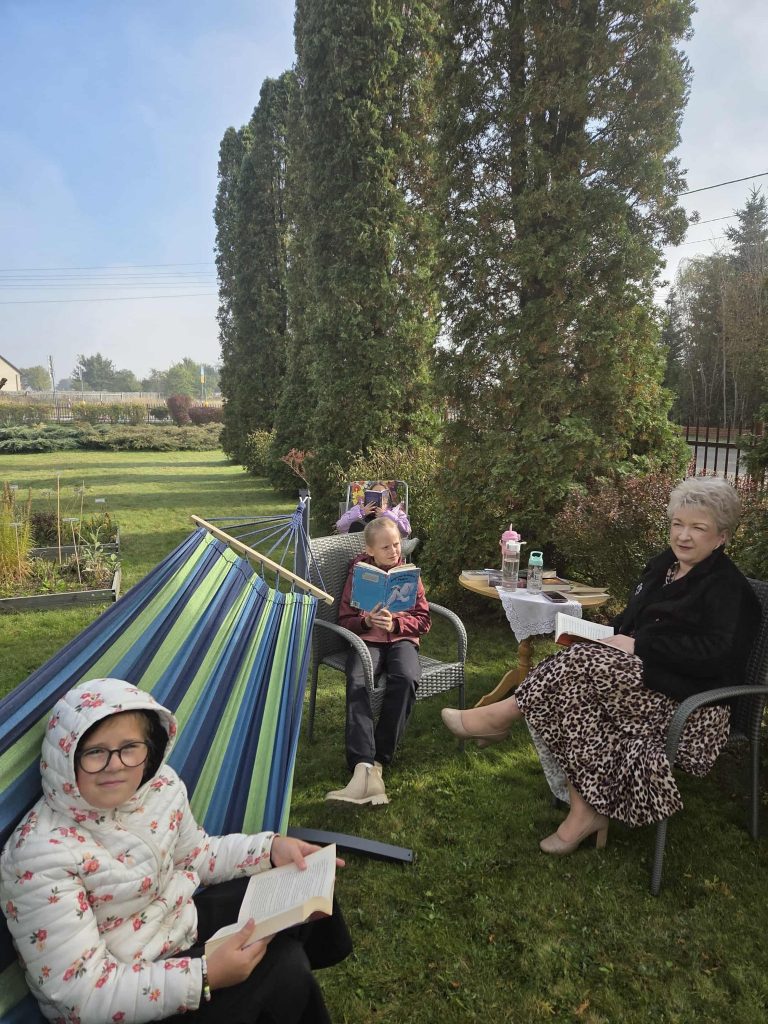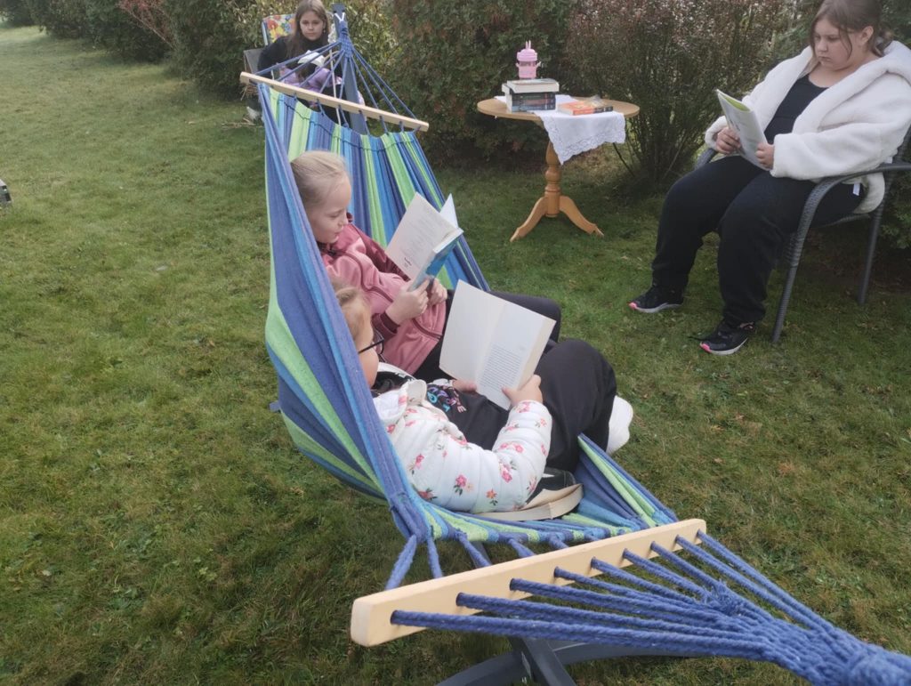 Na hamaku, leżakach, materacach, krzesłach turystycznych… korzystaliśmy z najcudowniejszego i najważniejszego wynalazku ludzkości. To „przyłapanie na czytaniu” było również realizacją części projektu „Promujemy czytanie w epoce cyfrowej”.