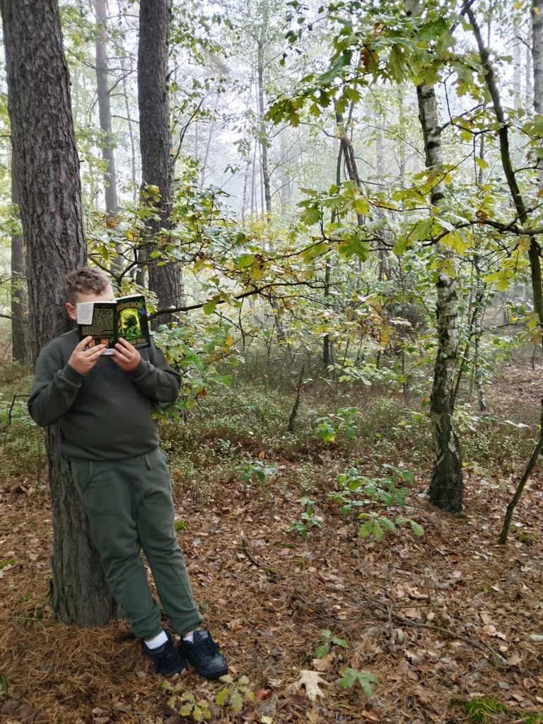 Na czytanie w przemiłym towarzystwie natury uczniowie i ich opiekunowie zabrali swoje ulubione książki. Wśród nich znalazły się m.in.: „Dziadek i niedźwiadek” Ł. Wierzbickiego, seria „Ale historia” G. Bąkiewicz, „Kamienie na szaniec” A. Kamińskiego, „Ewangelia według Piłata” E.E. Schmitta, „Baśniobór” B. Mulla, „Hobbit, czyli tam i z powrotem” J.R.R. Tolkiena, „Harry Potter” J.K. Rowling, seria „Wojownicy” E. Hunter, „Miłość ze snu” L. Keating, „Dziewczynka z parku” B. Kosmowskiej, „Panna z mokrą głową” K. Makuszyńskiego, „Ten obcy” I. Jurgielewiczowej, „O psie, który jeździł koleją” R. Pisarskiego.