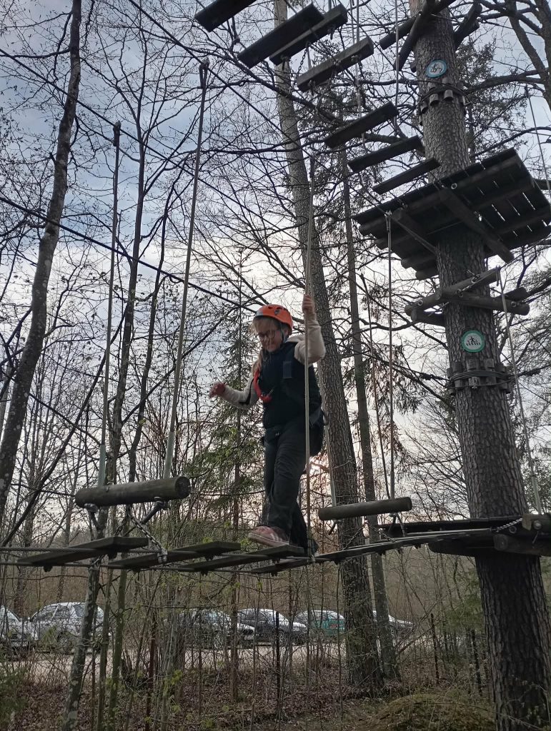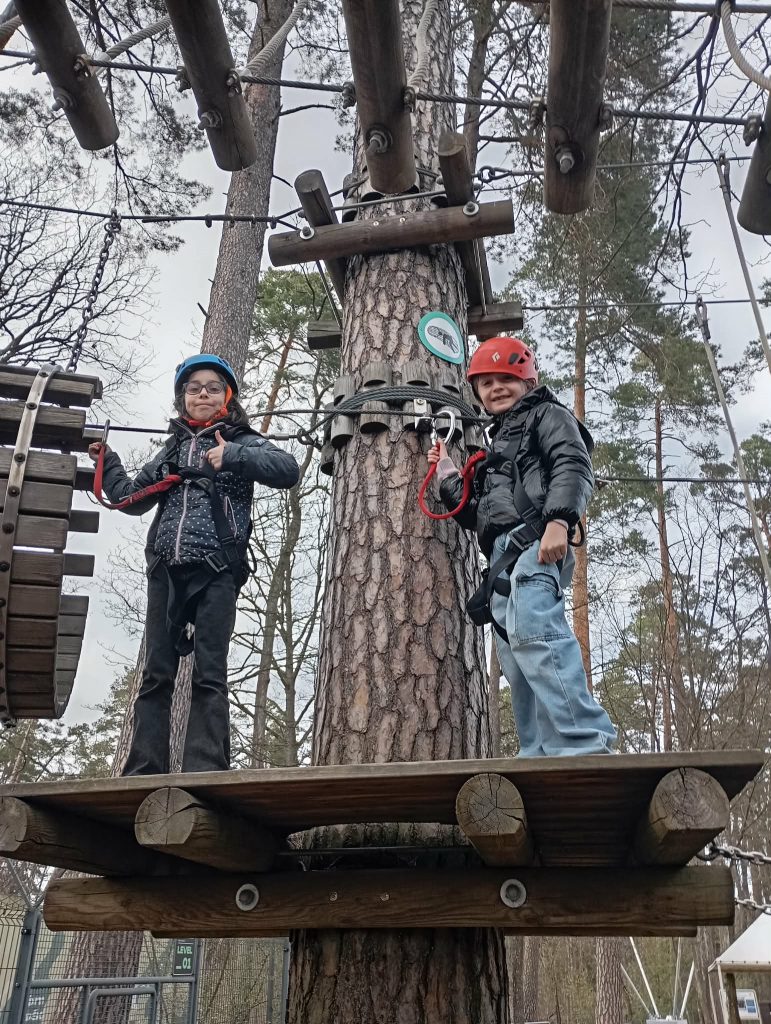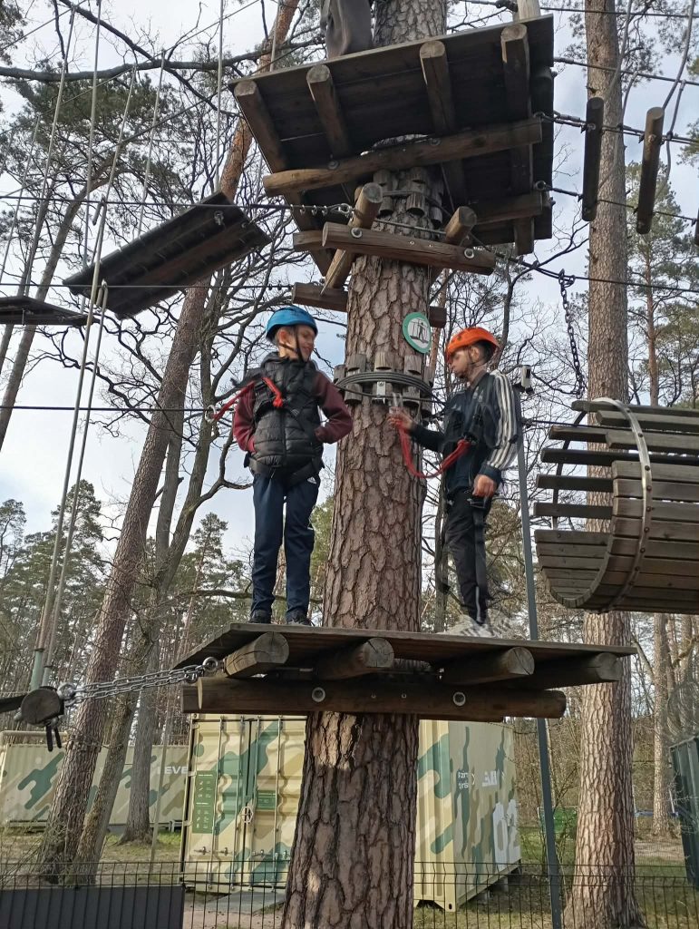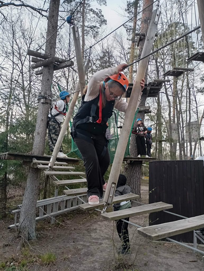 Po obiedzie przenieśliśmy się do parku linowego, który okazał się prawdziwym wyzwaniem, ale też świetną zabawą. Na zakończenie dnia czekało na nas klimatyczne ognisko. Spędziliśmy ten czas na wspólnych zabawach, rozmowach i śmiechu, co było idealnym podsumowaniem pełnego wrażeń dnia.