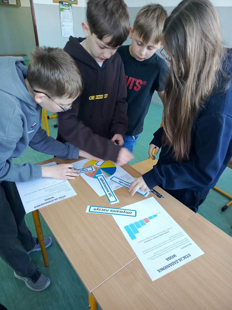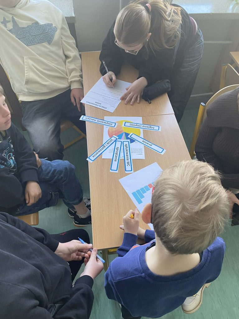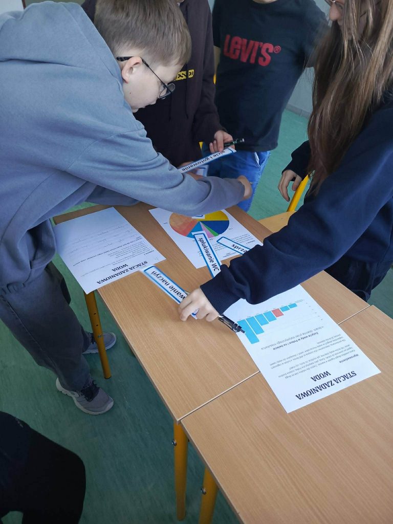 Na stacji o wodzie uczestnicy wykonali zadania pokazujące, jak cenna jest woda i ile jej zużywamy podczas codziennych czynności.