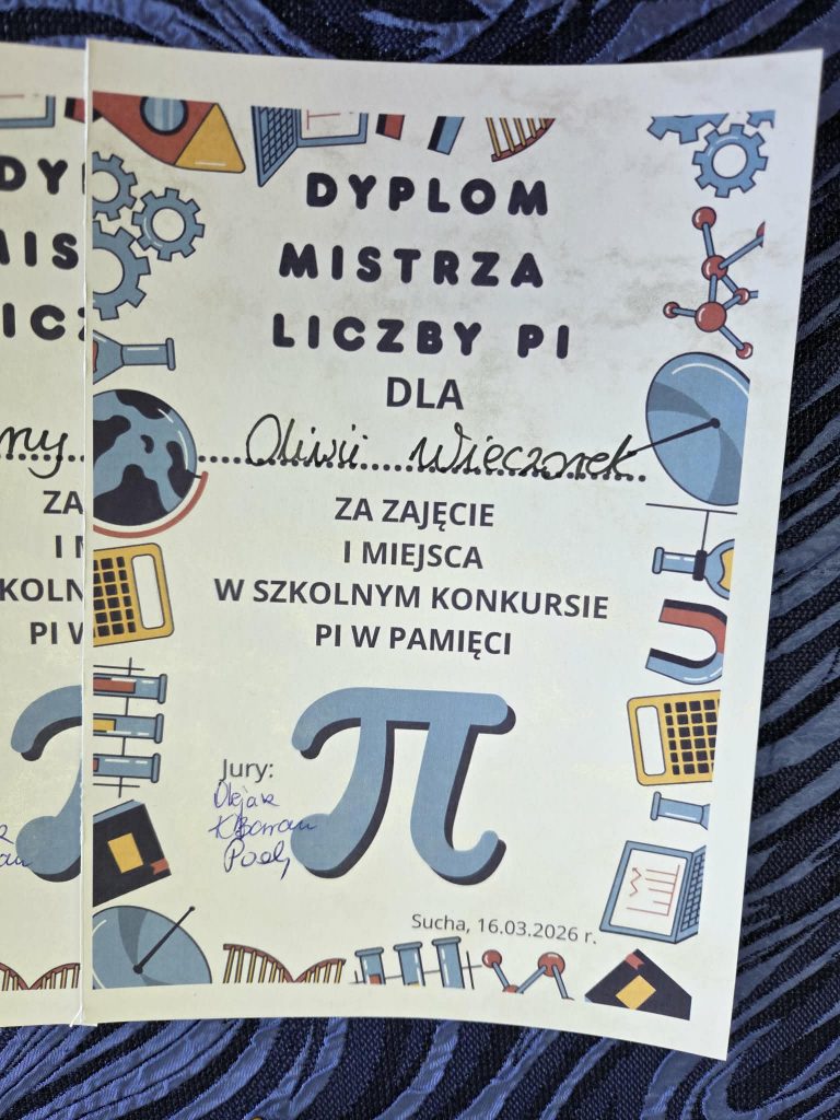 Gratulujemy wszystkim uczestniczkom i cieszymy się, że matematyka może inspirować, rozwijać pamięć oraz dostarczać wielu pozytywnych emocji. Mamy nadzieję, że konkurs „π w pamięci” na stałe wpisze się w kalendarz szkolnych wydarzeń.