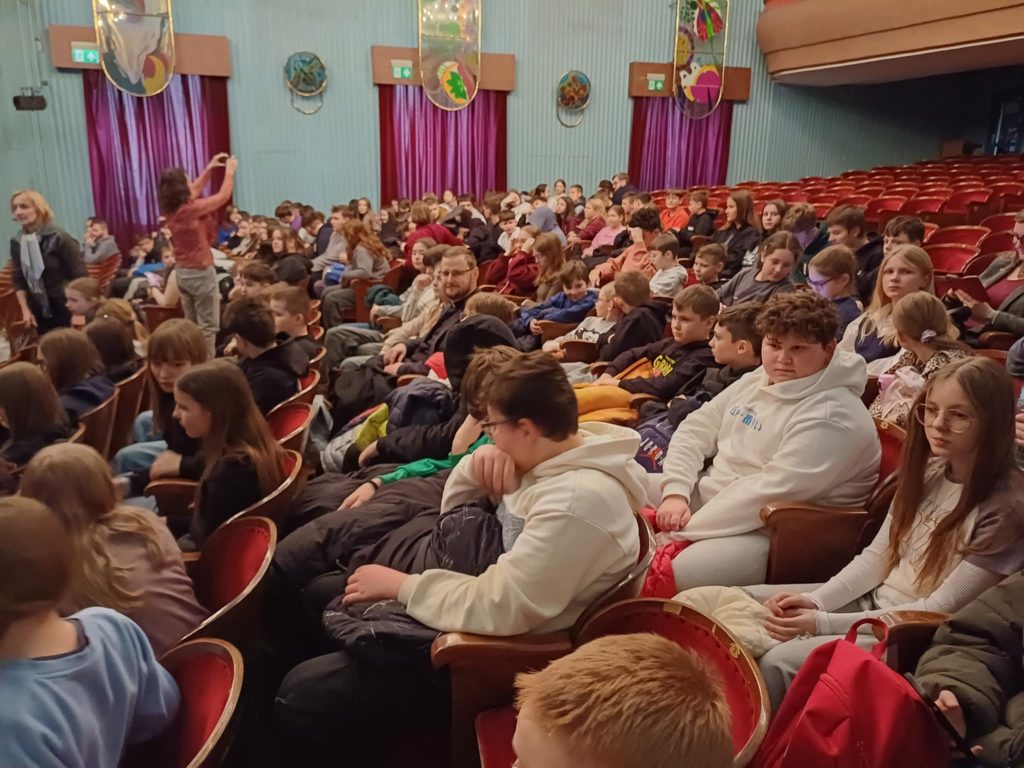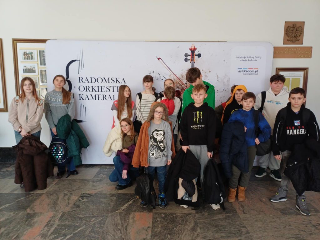 W dniu 20.02.2026 uczniowie klas 4-8 miło spędzili czas w Sali koncertowej Radomskiej Orkiestry Kameralnej w Radomiu, gdzie mieli okazję obejrzeć musical „Opowieść wigilijna” w wykonaniu Teatru Muzycznego Forte. Przed spektaklem grupa udała się do Galerii Słonecznej, gdzie uczniowie wspólnie spożyli posiłek oraz mieli czas na wspólne rozmowy. Sprzyjało to wzajemnej integracji społeczności szkolnej. Sztuka rozpoczęła się planowo i wzbudziła wiele różnorodnych emocji. Wspólnie z aktorami uczniowie wybrali się na niezwykłą wyprawę w głąb duszy Ebenezera Scrooga, zgłębiając dokonane przez niego w przeszłości czyny, a także obserwując jego niezwykłą przemianę. Dzięki znakomitej oprawie muzycznej przesłanie opowieści nie mogło pozostać niezauważone. Wyjazd udał się znakomicie, z jednej strony rozwijał wrażliwość estetyczną naszych uczniów poprzez kontakt z kulturą, jak również umożliwił uczniom wspólne spędzenie czasu w warunkach poza terenem szkoły.