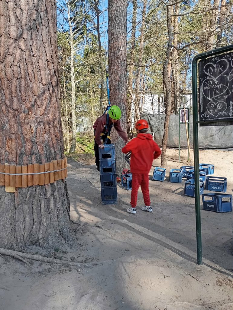 Ostatniego dnia wycieczki wszyscy wstali w dobrych humorach, choć dało się odczuć, że to już koniec wspólnej przygody. Po śniadaniu dzieci wzięły udział w ostatnich zajęciach, podczas których budowały kreatywne wieże ze skrzynek. Była to świetna okazja do współpracy, zabawy i wykorzystania wyobraźni, a powstałe konstrukcje robiły duże wrażenie. Po zakończeniu zajęć uczestnicy spakowali swoje rzeczy i opuścili pokoje, żegnając się z miejscem, w którym spędzili tyle radosnych chwil. Następnie wyruszyliśmy w drogę powrotną do domu. Podczas podróży zatrzymaliśmy się w Szczytnie, gdzie mieliśmy okazję zwiedzić mury zamku krzyżackiego. Krótki spacer po historycznym miejscu pozwolił jeszcze na chwilę przenieść się w przeszłość i poznać ciekawostki związane z tym regionem. Na zakończenie wycieczki zatrzymaliśmy się na wspólny posiłek w McDonald’s, co było miłym akcentem na koniec wyjazdu. W końcu dotarliśmy pod szkołę, gdzie na dzieci czekali już stęsknieni rodzice. Powitania były pełne radości i emocji, a uczestnicy wycieczki wrócili do domów z głowami pełnymi wspomnień i uśmiechami na twarzach.