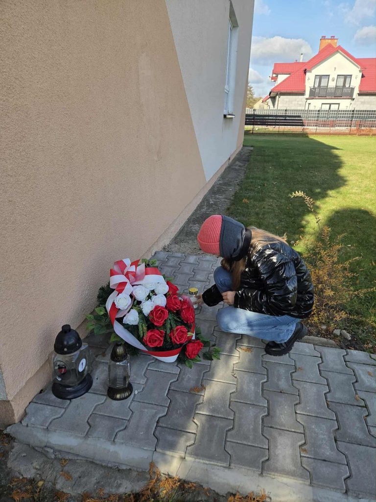 Uczniowie uczcili też pamięć żołnierzy AK, składając kwiaty i zapalone znicze przy Pomniku Armii Krajowej i tablicy upamiętniającej zrzut Cichociemnych, znajdujących się na placu naszej szkoły. Pamiętamy, że to byli wielcy bohaterowie, którzy oddali życie za wolność naszej ojczyzny…
