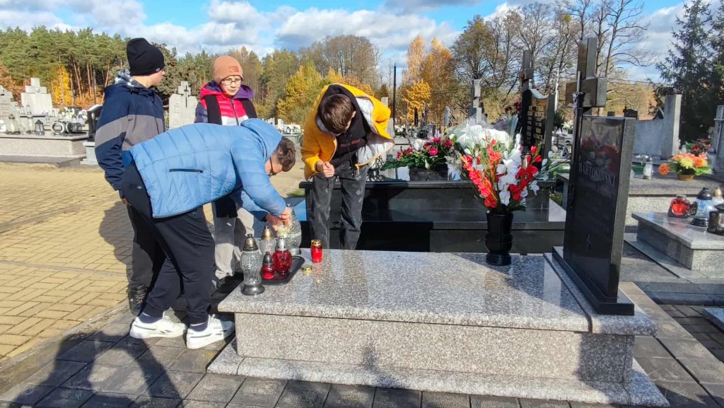 Tradycją naszej szkoły jest coroczne odwiedzanie grobów na pobliskim cmentarzu przed zbliżającymi się Wszystkimi Świętymi. To ważna lekcja lokalnej historii i patriotyzmu, a przede wszystkim szacunku dla Tych, którzy odegrali ważną rolę w naszej małej ojczyźnie… Księża, nauczyciele, strażacy, polegli żołnierze… – to Im nasi uczniowie wraz z wychowawcami składali hołd i ofiarowali modlitwę w ostatnich dniach.