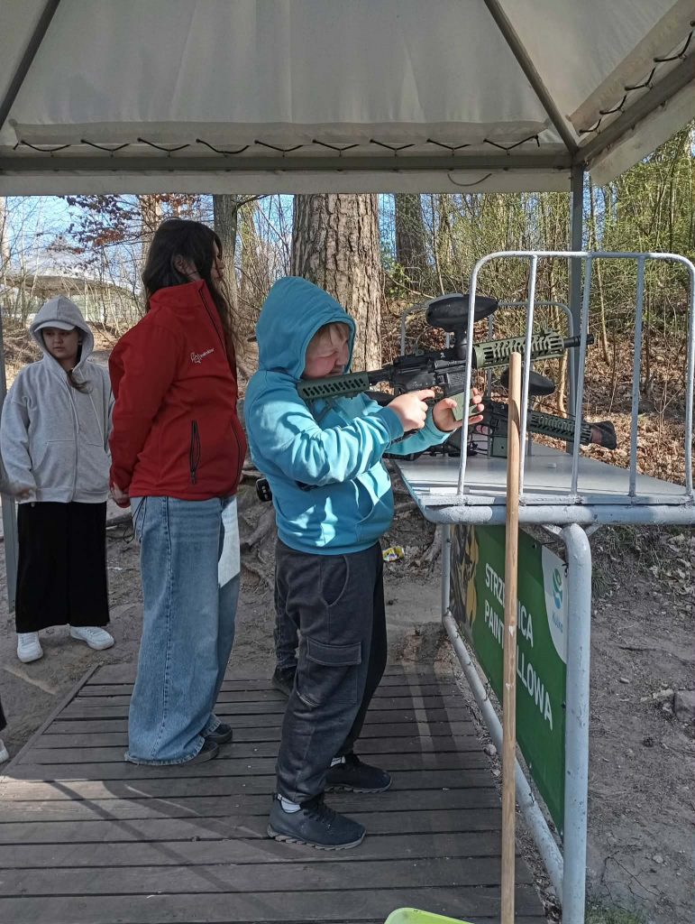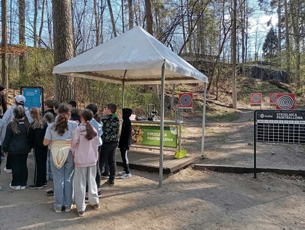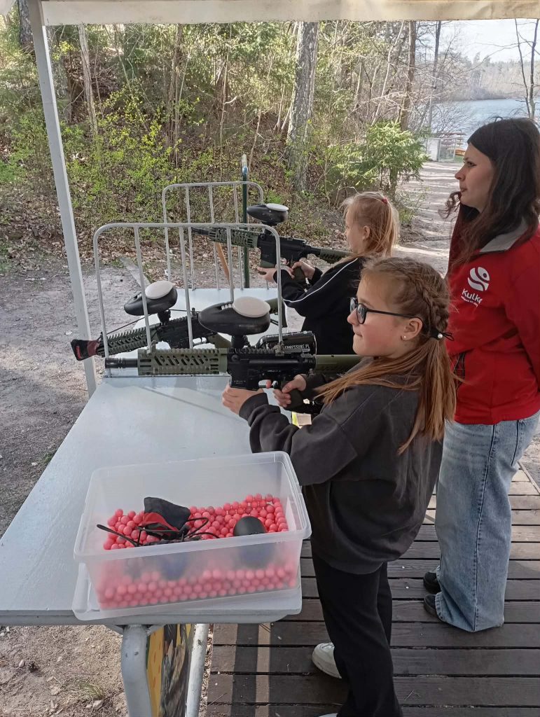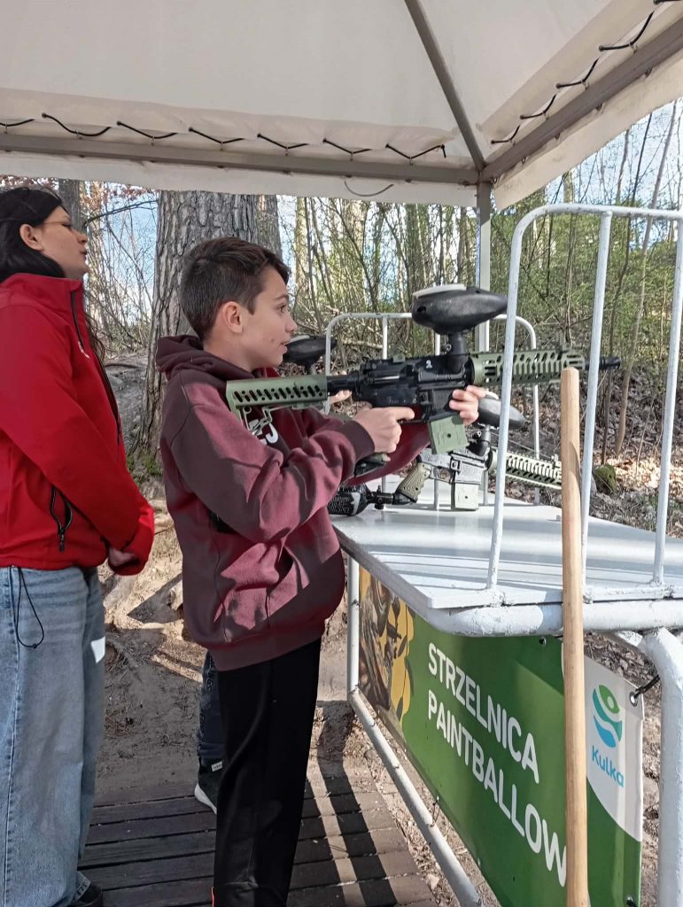 Po długiej podróży pierwszego dnia naszej trzydniowej wycieczki dotarliśmy do ośrodka „Kulka” na Mazurach. Po przyjeździe zakwaterowaliśmy się w pokojach i udaliśmy się na pyszny obiad, który dodał nam energii na kolejną część dnia. Po posiłku rozpoczęliśmy pierwsze zajęcia, jakimi była strzelnica paintballowa, gdzie każdy mógł spróbować swoich sił w trafieniu do celu. Następnie odwiedziliśmy kosmiczny żyroskop, w którym czuliśmy się jak astronauci. Po kolacji dla wyciszenia udaliśmy się na do kina 3D na magiczny seans „Cztery pory roku”.
