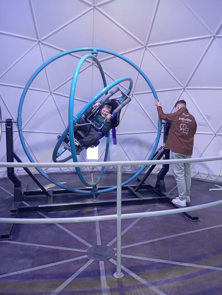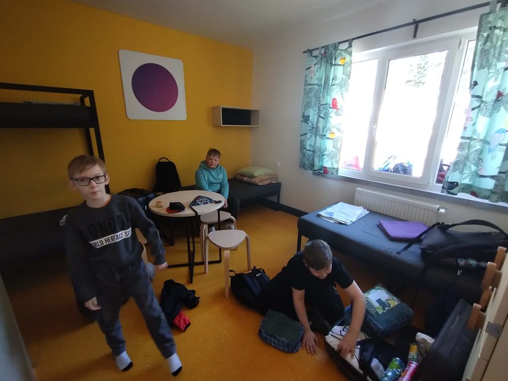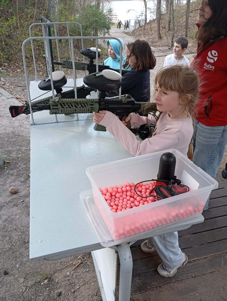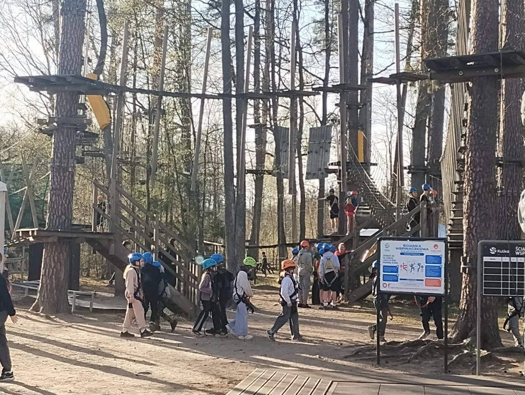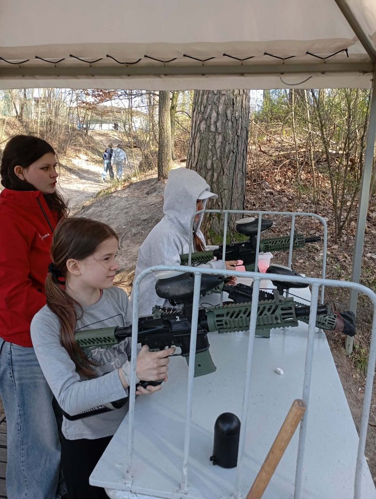 Po długiej podróży pierwszego dnia naszej trzydniowej wycieczki dotarliśmy do ośrodka „Kulka” na Mazurach. Po przyjeździe zakwaterowaliśmy się w pokojach i udaliśmy się na pyszny obiad, który dodał nam energii na kolejną część dnia. Po posiłku rozpoczęliśmy pierwsze zajęcia, jakimi była strzelnica paintballowa, gdzie każdy mógł spróbować swoich sił w trafieniu do celu. Następnie odwiedziliśmy kosmiczny żyroskop, w którym czuliśmy się jak astronauci. Po kolacji dla wyciszenia udaliśmy się na do kina 3D na magiczny seans „Cztery pory roku”.
