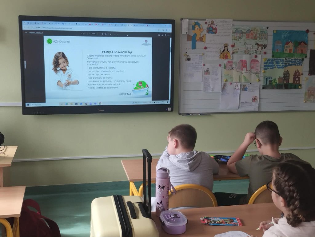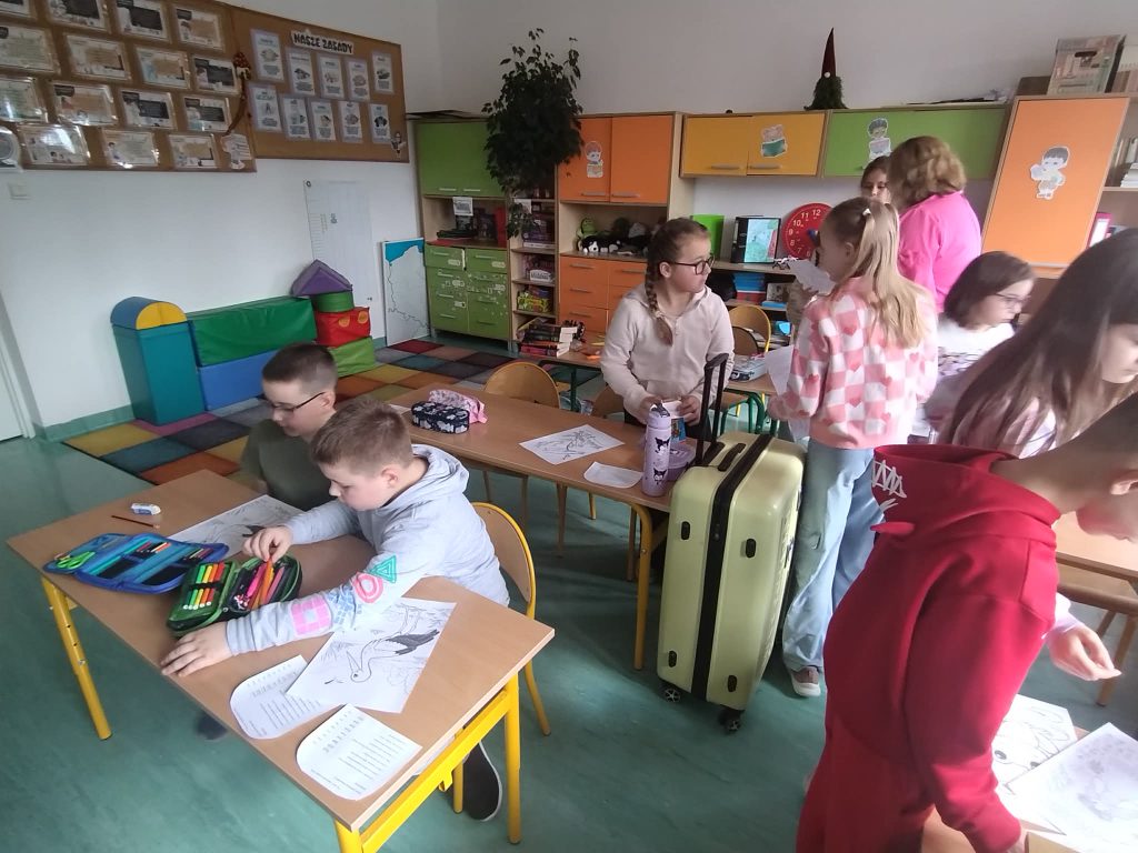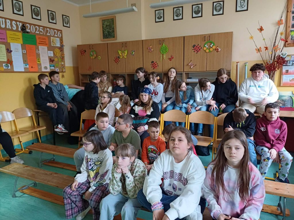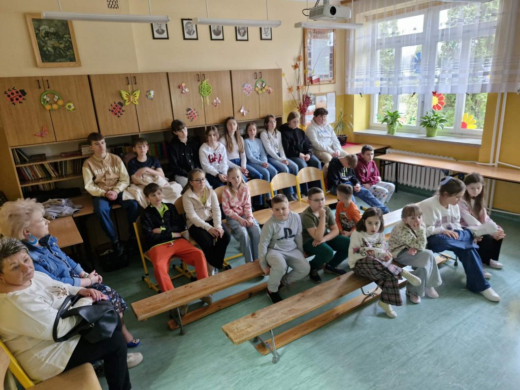 Po powrocie do szkoły uczniowie uczestniczyli w prelekcji realizowanej w ramach programów „Żyj dobrze” oraz „Zachowaj trzeźwy umysł” oraz z zakresu dietetyki żywieniowej. Podczas spotkania omówiono najważniejsze filary zdrowego stylu życia, zwracając uwagę na znaczenie aktywności fizycznej, odpowiedniego odżywiania oraz dbania o dobre samopoczucie. Młodsze dzieci dodatkowo rozwiązywały quizy i wykonywały kolorowanki związane z wiosną i ochroną przyrody. ![]()