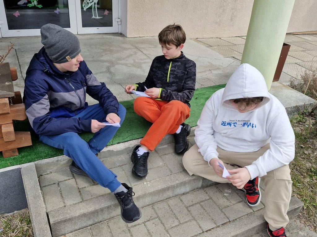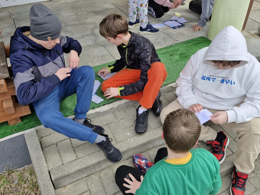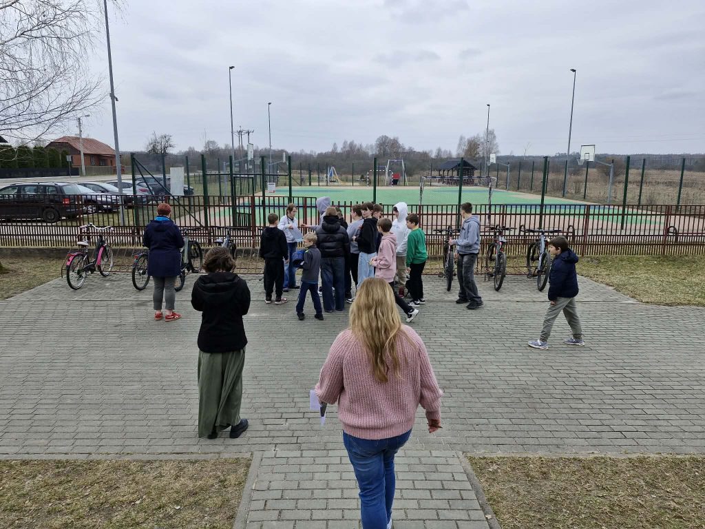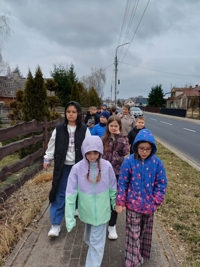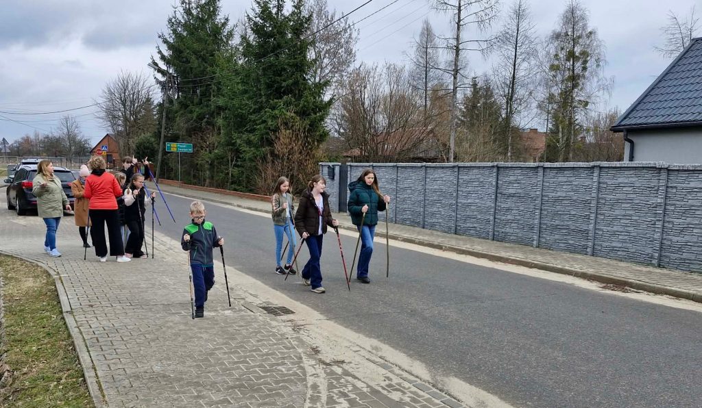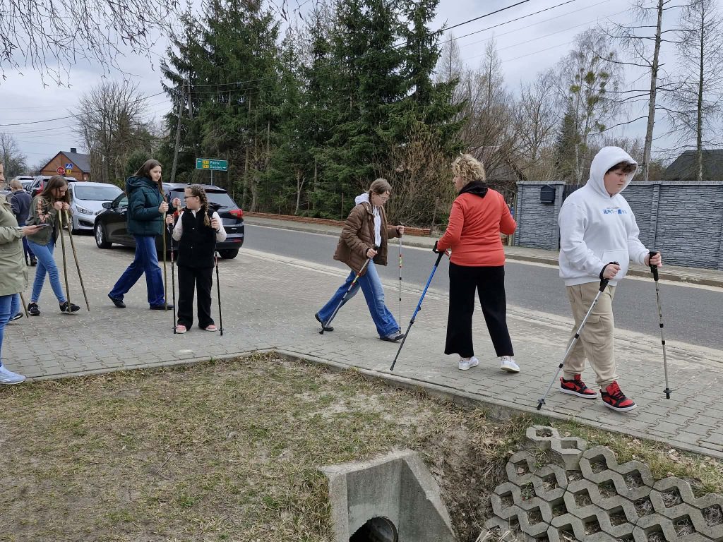 Kolejnym punktem programu był podział na grupy i wyjście na świeże powietrze. W ramach aktywności fizycznej uczniowie udali się na spacer w poszukiwaniu pierwszych oznak wiosny. Część uczestników wybrała marsz z kijkami, inni natomiast spacerowali w spokojniejszym tempie, obserwując przyrodę i ciesząc się coraz cieplejszą aurą.