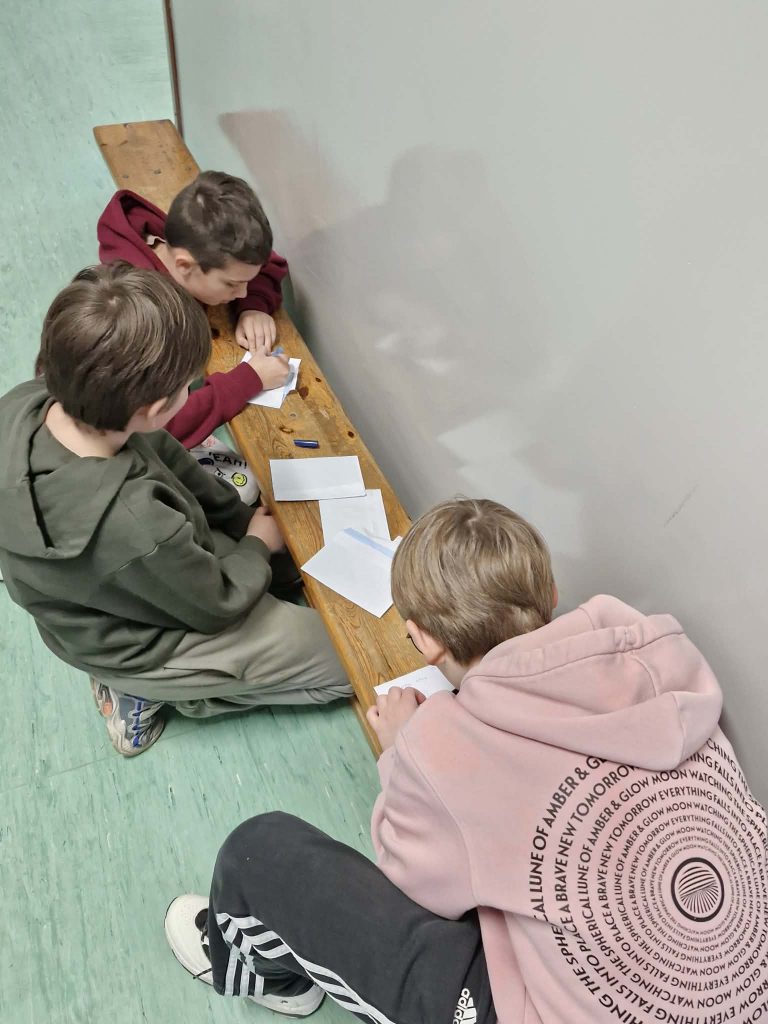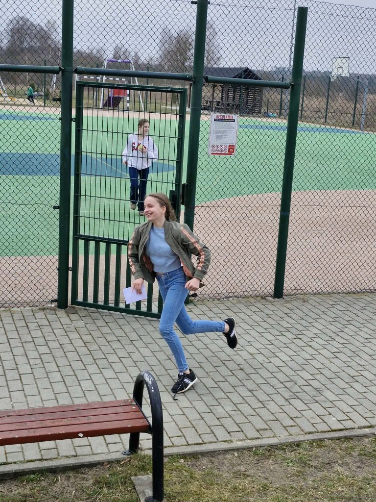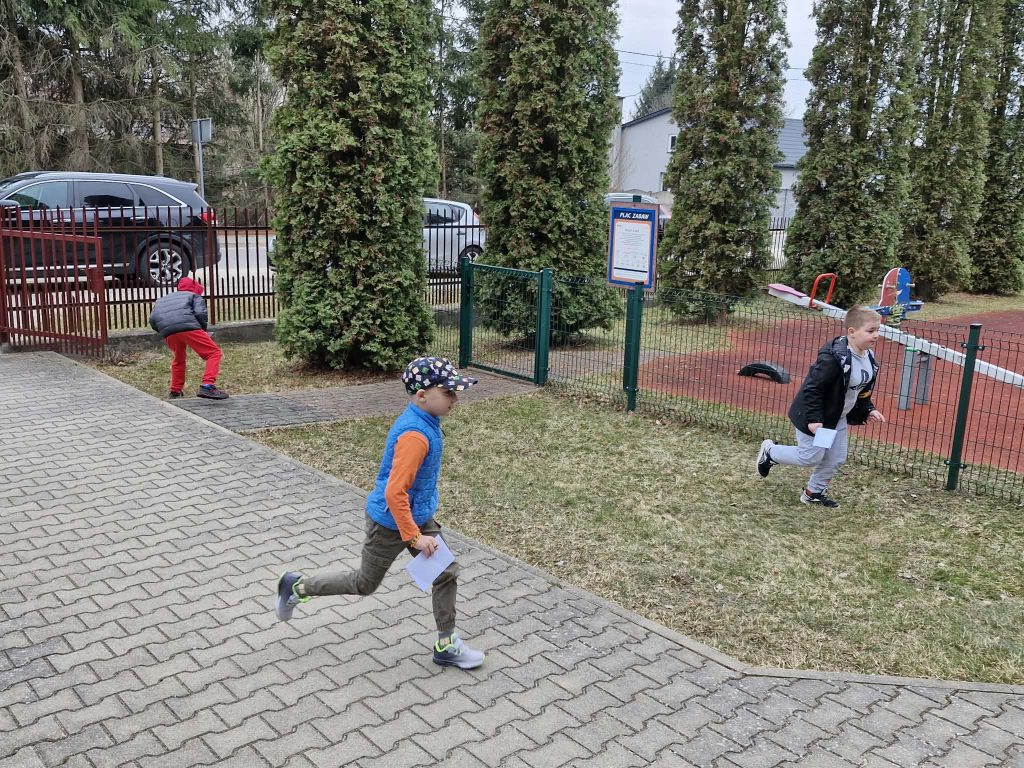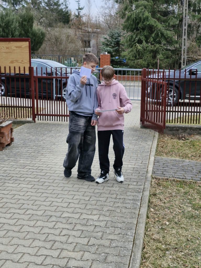 Uroczystość rozpoczęliśmy od gry terenowej, która wzbudziła duże zainteresowanie wśród uczniów. Na terenie szkoły zostały rozmieszczone koperty z różnorodnymi zadaniami. Uczniowie, działając w zespołach, musieli je odnaleźć i wykonać polecenia, które wymagały zarówno sprytu, jak i współpracy. Zabawa ta sprzyjała zdrowej rywalizacji.