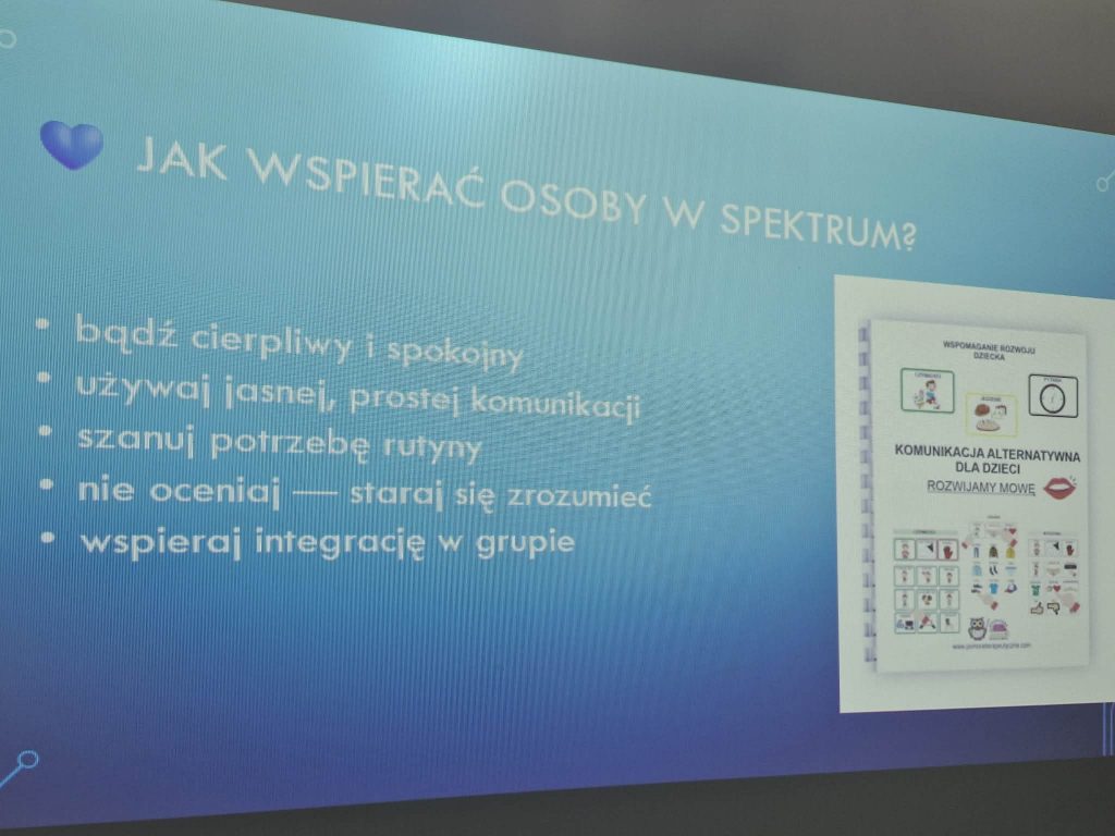 Wczoraj w naszej szkole odbył się krótki apel z okazji Światowego Dnia Świadomości Autyzmu. Podczas spotkania uczniowie obejrzeli prezentację multimedialną, w której przedstawione zostały podstawowe informacje na temat autyzmu, typowe zachowania osób ze spektrum autyzmu oraz wyzwania, z jakimi mogą się spotykać w codziennym życiu. Prezentacja zawierała także przykłady sytuacji sprzyjających wsparciu i akceptacji osób z autyzmem w środowisku szkolnym i społecznym.