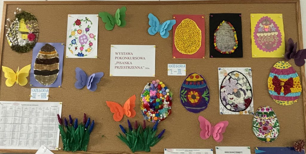 30 marca został rozstrzygnięty konkurs plastyczny pt.: „Pisanka przestrzenna”. W konkursie brali udział uczniowie i uczennice w dwóch kategoriach: