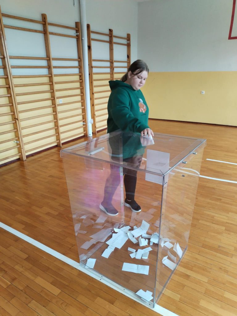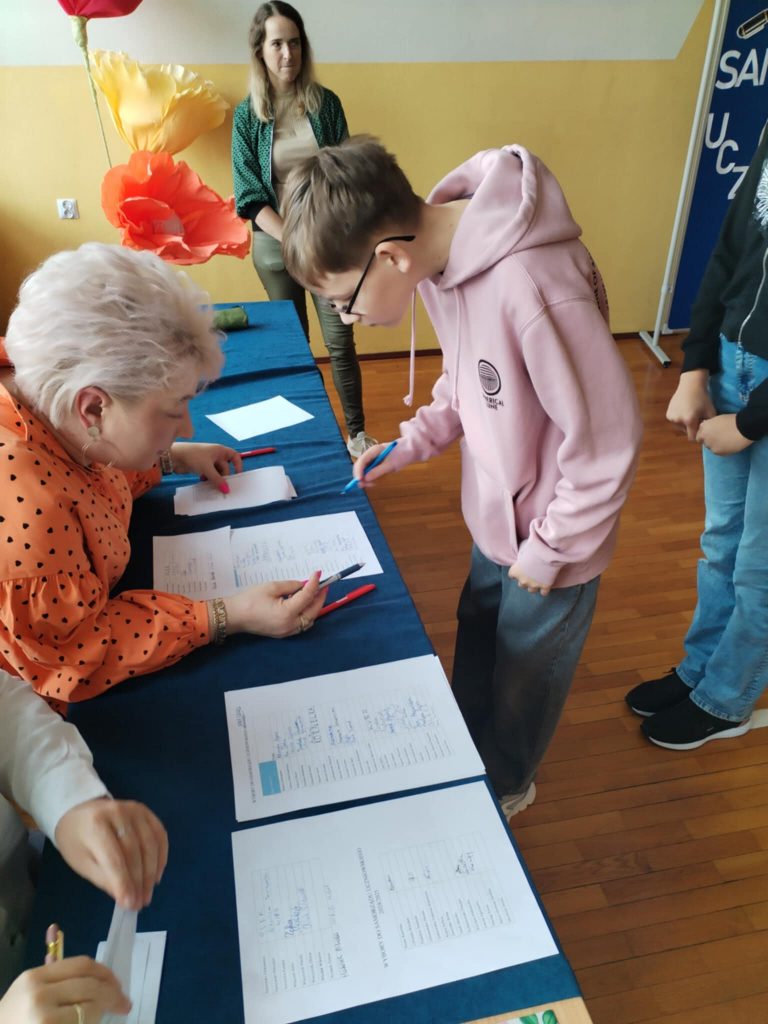 Po prezentacjach odbyło się głosowanie, w którym wzięli udział uczniowie oraz nauczyciele i pracownicy. Frekwencja była wysoka, co świadczy o dużym zainteresowaniu i poczuciu odpowiedzialności za kształtowanie szkolnej społeczności.